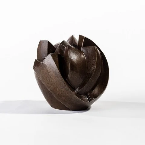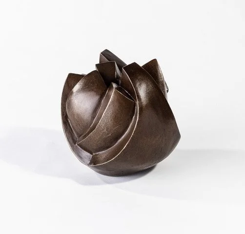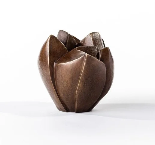 This body of work inspired by my garden and the expressive, ephemeral nature of tulips. Each flower form in this series is unique - some just beginning to open, others fully in bloom - capturing the tension between fragility and strength. My practice centers on the interplay of movement, space, and form. I work primarily in bronze, drawn to its durability and material history. With experience in both commercial and self-built foundries, I remain closely connected to every stage of the process. These sculptural forms are compact, self-contained environments that reflect my fascination with internal energy, resilience, and the quiet beauty found in natural structures